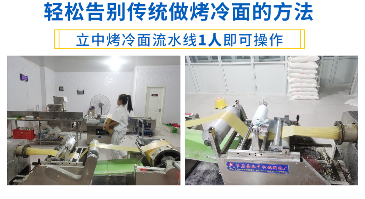 立中烤冷面流水线设备LZ-300-9是先进的烤冷面生产制作机器设备,替代了以往自动烤冷面机器,省时间省人工,真真正正实现了烤冷面生产一体化。欢迎你的订购,巨鹿立中机械为你提供技术,配方,生产的同时。厂家技术人员将免费上门进行安装,手把手教你生产操作烤冷面。